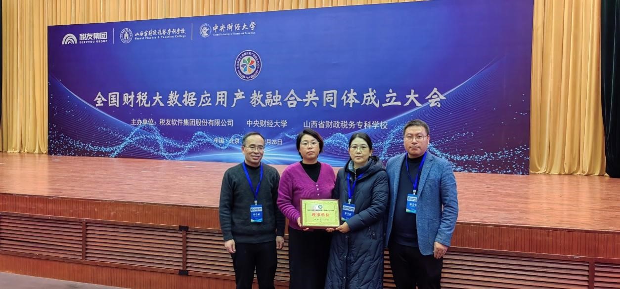 近日,由中央财经大学、山西省财政税务专科学校和税友软件集团股份有限公司牵头发起的“全国财税大数据应用产教融合共同体”于2024年12月28日在中央财经大学成功举办成立大会。此次会议有来自全国27个省份,280所院校,40家企业行业组织,共计420余人参会。我院victor·1946源自院长刘颖一行4人受邀参加会议,经组委会批准,我院担任全国财税大数据应用产教融合共同体的理事单位。