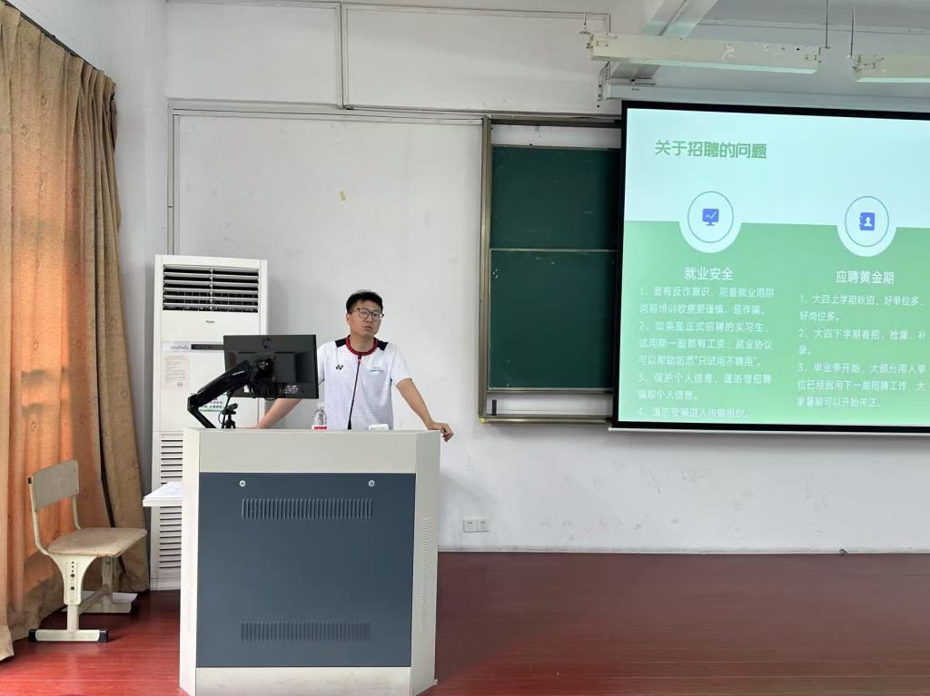 接着,陈杰从专业的角度出发,针对就业政策、就业形势的深入分析以及丰富的指导经验,为同学们带来了关于就业政策以及就业节奏的深入解读,为同学们未来就业的大致路径提出建议。同时,他就同学们普遍关心的问题进行了交流,梳理了各个关键时间节点,有助于同学们把握应聘黄金期;此外,他还提醒同学们重视就业安全、重视个人简历。