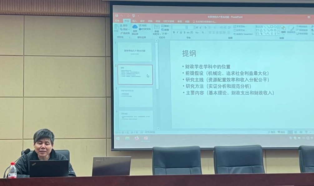 为提高学生对财政学知识的理解,2023年12月7日,我院邀请浙江财经大学赵海利教授于学术中心第二报告厅开展了“财政学的几个基本问题”的讲座,本学期上《财政学》课程的学生聆听本次讲座,张雪平老师、刘央央老师参与讲座。