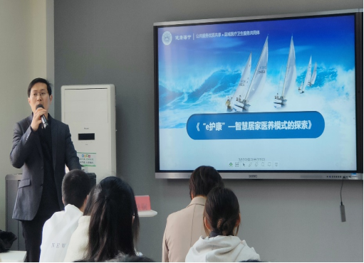 而后,他分析了长护险的模式与试点建设的总体成效,介绍了“e护康”智慧居家医养模式内容,结合失能老人、互联网+护理、家庭病床等关键词为同学们勾画出新型医养模式的蓝图。