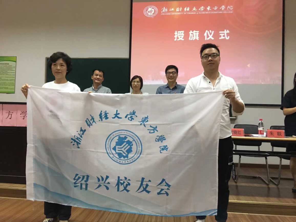 学院绍兴校友会筹备组代表陈卓介绍绍兴校友会的筹备情况。大会审议通过了《浙江财经大学东方学院绍兴校友会章程》和我院绍兴校友会第一届理事会名单。朱联当选为会长,黄蓉当选为秘书长。主席台领导为新当选的理事会成员颁发聘书,伏晓红为学院绍兴校友会授旗。