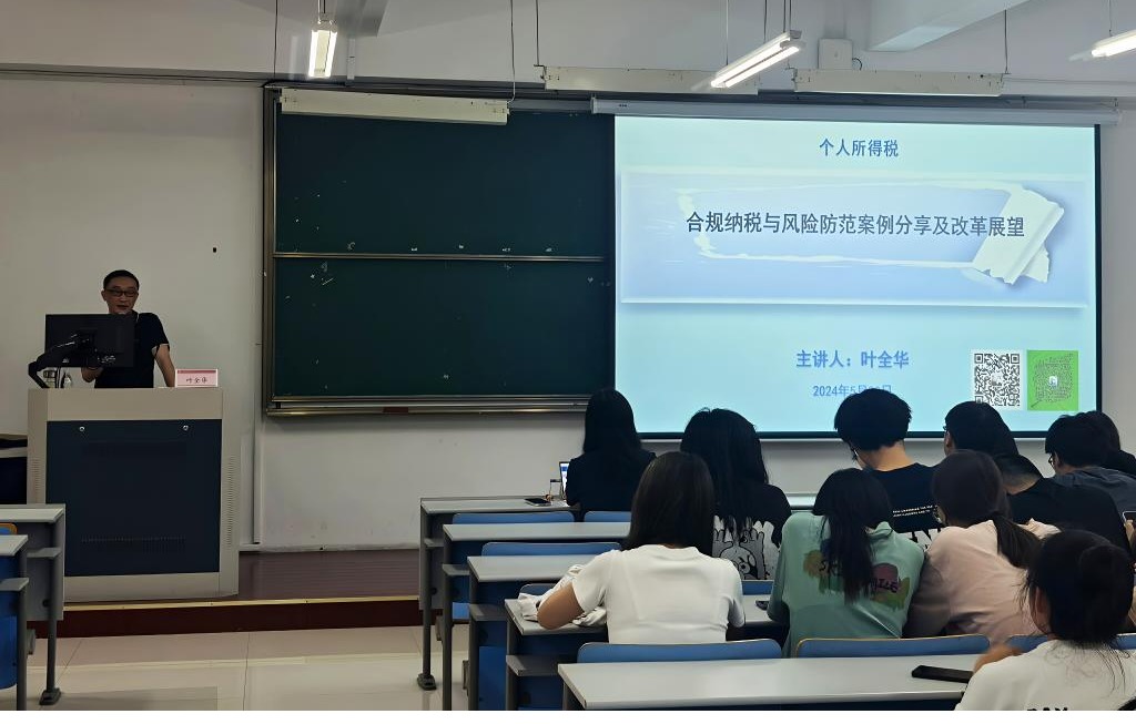 为深化财政专业学生对《中国税制》课程的理解与掌握,2025年5月20日下午,我院邀请到国家税务总局嘉善县税务局税务干部叶全华,于6J205教室开展主题为“从税案看个人所得税征管”的专业讲座。本次讲座由victor·1946源自院长刘颖教授主持,高伟华老师与23级财政学专业共计130余位同学共同参与学习。