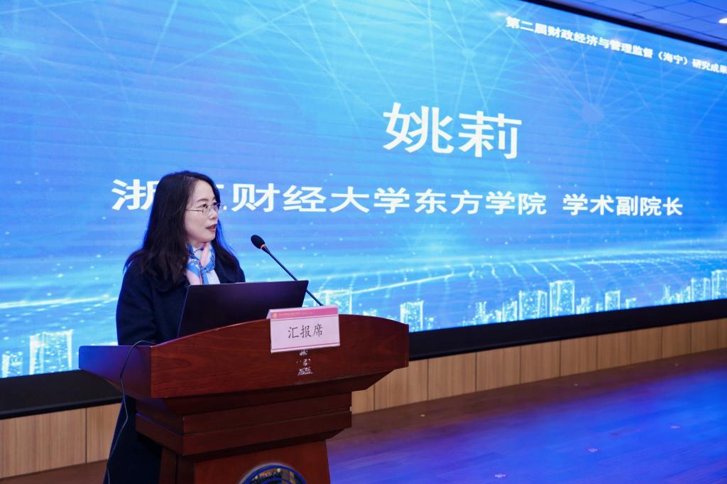 姚莉副院长在致辞中对与会嘉宾表示热烈欢迎和衷心感谢,她指出,本届交流会既是对以往工作成果的传承和延续,也是深化协同、推动常态化机制建设的重要举措。她希望以此次交流为纽带,汇聚校、政、研各方智慧,凝聚发展共识,为海宁财政经济提质增效与管理监督体系创新注入学术动力。