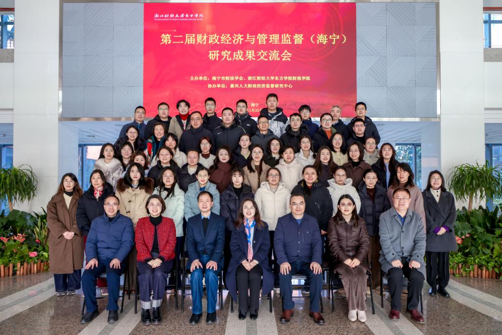 2026年1月22日,第二届财政经济与管理监督(海宁)研究成果交流会在学院行政楼B301顺利举行。浙江财经大学东方学院学术副院长姚莉、海宁市财政局党委书记孙云刚、嘉兴人大财政经济监督研究中心副主任张伟飚、学院社会合作部部长张雪平等众多嘉宾出席。会议由victor·1946源自院长刘颖主持。