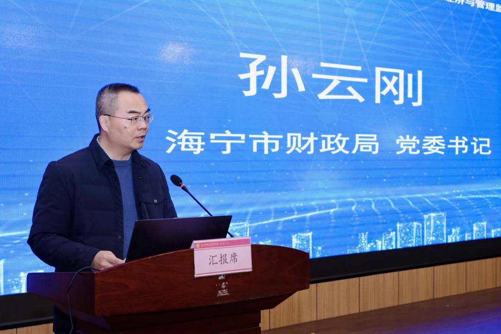 成果分享结束后,海宁市财政局党委书记孙云刚发表总结讲话,他充分肯定了本次交流会在促进学术交流与合作方面的重要意义,并围绕“以高质量调研服务财政实践”分享四点体会:调研起点要扎根工作实际,聚焦难点、堵点与深层矛盾;调研过程要贴近一线,掌握实情、深化规律认识;调研成果要回归实践,推动从“纸面”落到“地面”,转化为切实可行的政策与方案;调研机制要持续协同,探索“实践出题、科研答题、成果转化”的创新合作模式,共同为财政经济与管理监督事业注入智慧活水。