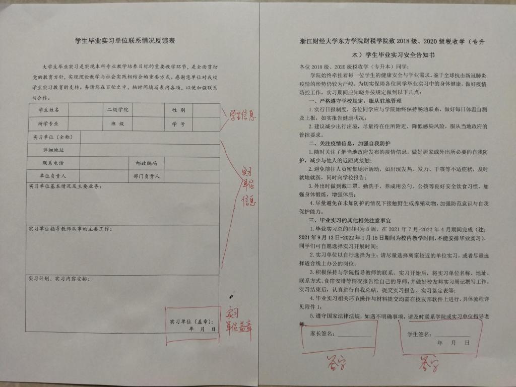 3.告知父母实习相关事项,征求父母同意,并签署安全告知书(附件3);